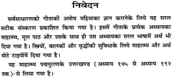 Experience the complete spiritual journey with our श्रीमद्भगवद्गीता माहात्म्यसहित (Gita with Mahatmya) edition. This special version includes not only the profound teachings of Lord Krishna but also the Mahatmya—the glorious significance and benefits of studying the Gita. Beautifully presented and authentically translated, this sacred text will transform your understanding of dharma, karma, and life's purpose. Invite divine wisdom into your home with this essential spiritual treasure.