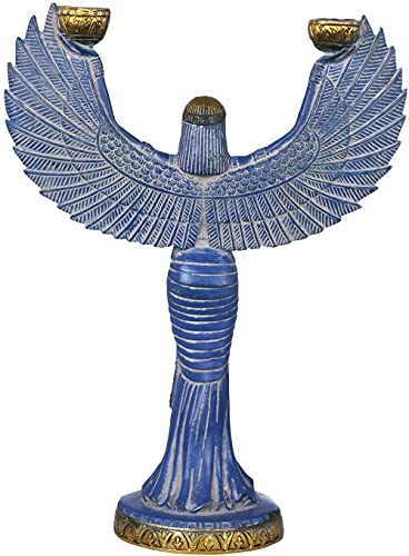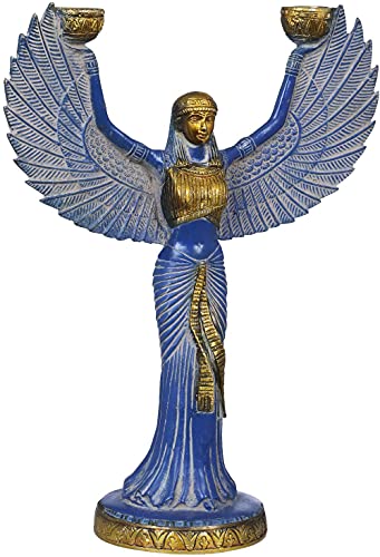 Brass Egyptian Goddess ISIS with Candle Holder Blue (12 inch)