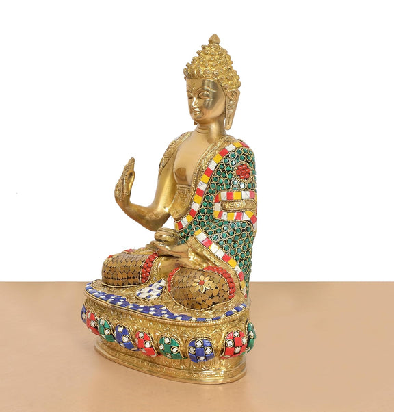 Brass Abhaya Mudra Buddha Idol (Height 12.5 Inch)