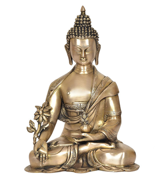 Brass Dhyan Mudra Buddha Statue - Handcrafted Spiritual Decor for Home and Office Decor - Meditating Buddha Idol (Height 15 Inch)