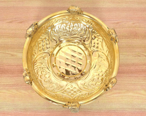 Celebrate the grace and majesty of this exquisite brass elephant adorned with a traditional urli idol and delicate ghungroo bells. Standing at 5 inches tall, this handcrafted piece brings warmth and spiritual charm to any space. The gentle jingle of the ghungroo adds a melodic touch, while the intricate brass work showcases timeless artistry. Perfect for your home altar, shelf, or as a cherished gift, this idol embodies devotion and cultural beauty. A treasured keepsake that honors tradition with every glance.