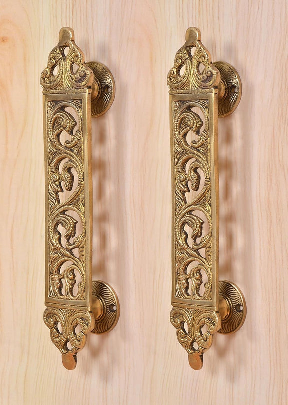 Brass Filigree Flower Main Door Pull Handle Pair (Pack of 2) (Height : 12 inch)