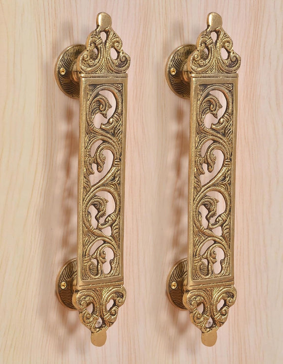 Enhance your entrance with this beautiful pair of brass filigree flower door pull handles. Standing 12 inches tall, their intricate floral design adds a warm, inviting charm to your main door. Crafted from durable brass, these handles combine elegance with lasting strength, making every welcome feel special and heartfelt.