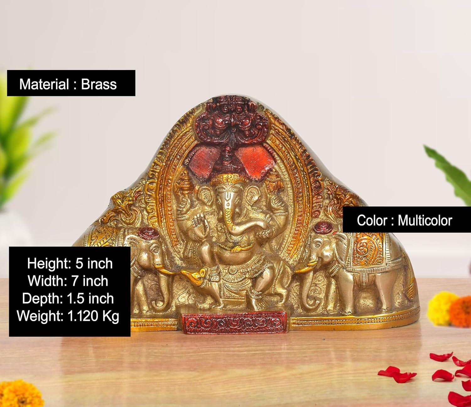 Brass Ganesha with Elephants Ganesh Idol Table Top and Wall Hanging (Height :5 inch)