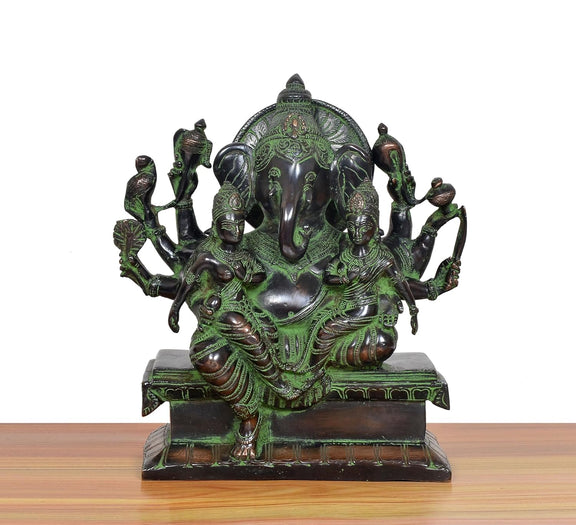 Brass Ganesha with Riddhi and Siddhi Idol (Height : 10 inch) (Multicolor 1)