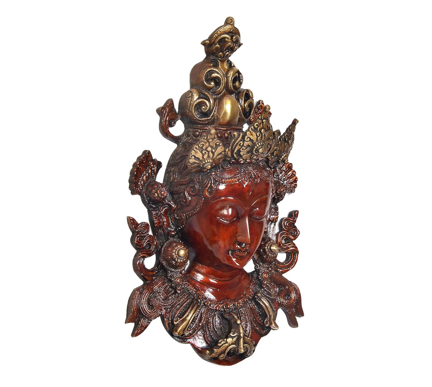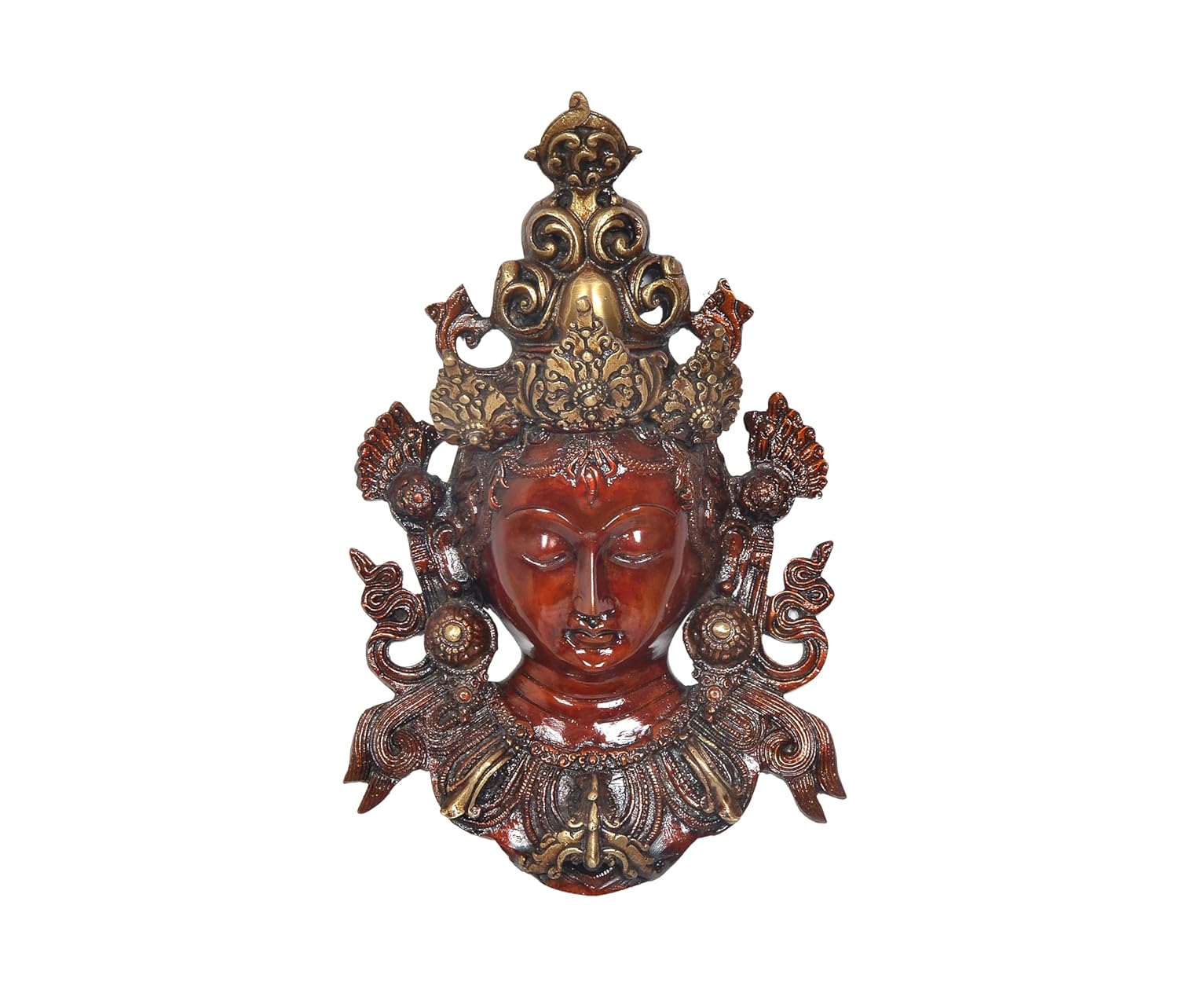 Brass Goddess Tara Wall Hanging Mask Buddhist Deity Statue (Height: 12.5 Inch) Multicolour 1