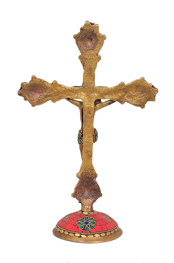 Brass Jesus Cross sculpture (Height: 11.5 inches)