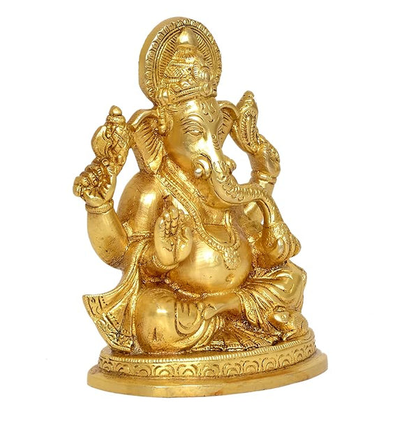 Brass Lord Ganesha Ganpati Idol Vinayak Religious Statue Brass Murti (Height 5.5 Inch)