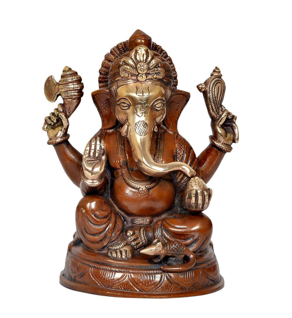 Brass Lord Ganesha Idol Ganesh Statue Decorative Sculpture for Home Decor Office Mandir Pooja Showpiece (Height 8 Inch)