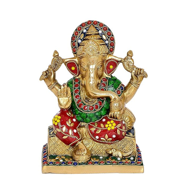 - Elegant Brass and Stone Ganesh Statue: Crafted from high-quality brass and stone materials for a stunning and unique look. Handcrafted by skilled artisans with meticulous attention to detail.