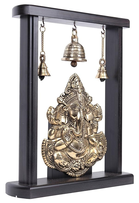 Brass Lord Ganesha Idol Wall Hanging with Wooden Frame For Home Decor Wall Decor Office Showpiece Height 13 Inches