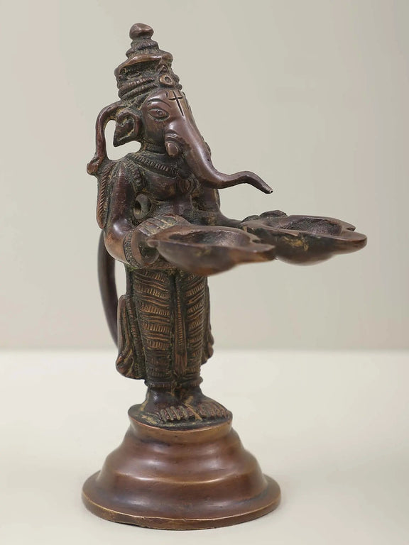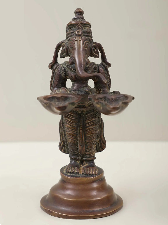 Brass Lord Ganesha Twin Lamps 5 inches
