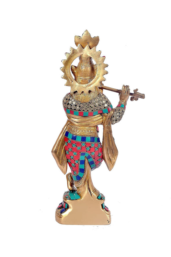 Brass Lord Krishna Idol Inlay Work (Height 15 Inch)