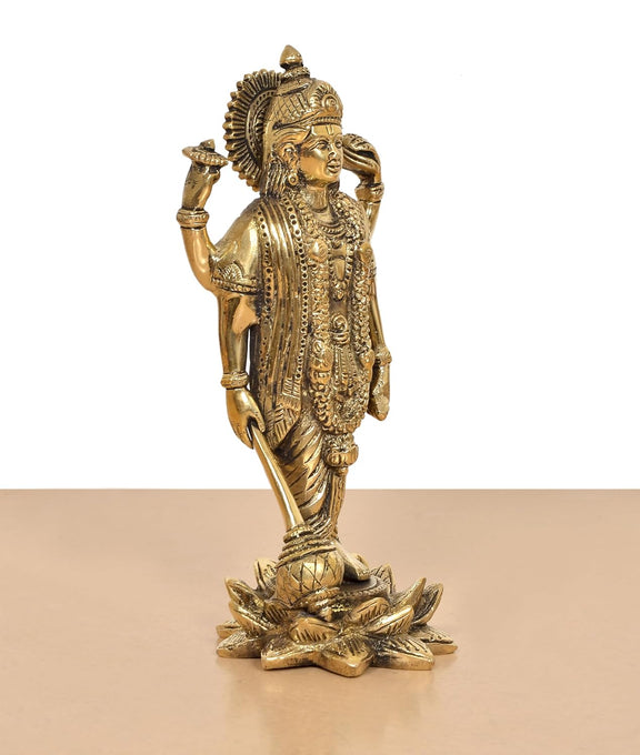 Brass Lord Vishnu Standing Idol (Height 8.5 Inch)