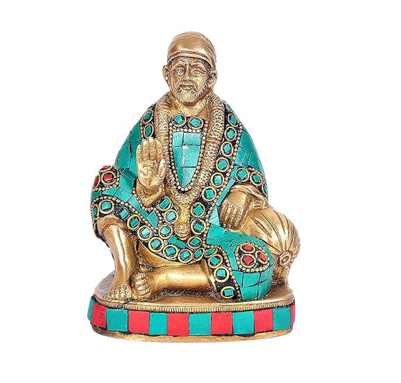 Brass Shirdi Wale Sai Baba Statue Idol Sai Baba Stone Work Height 5 Inch