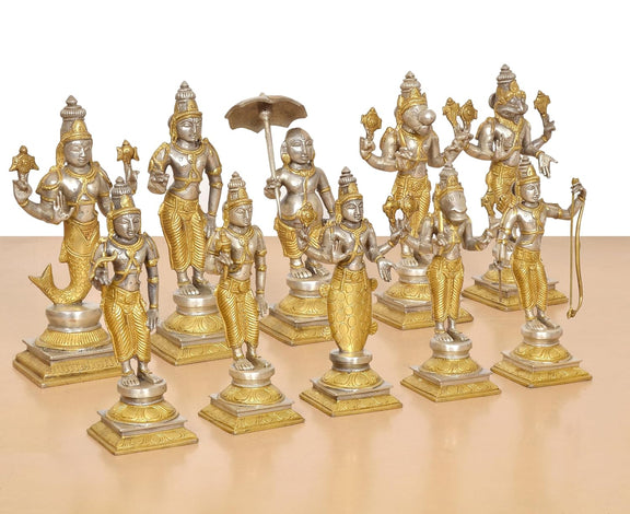 Brass Vishnu Dashavatara Idol (Height: 9 Inch)