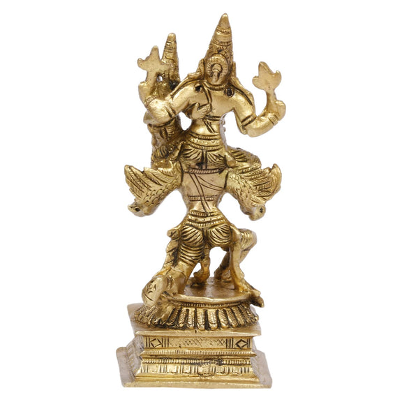 This exquisite 5.5-inch brass murti beautifully depicts Lord Vishnu and Goddess Laxmi seated on Garuda Dev, symbolizing divine protection and prosperity. Crafted with care, it brings a sense of peace and devotion to any space, perfect for your home altar or as a heartfelt gift. Let this sacred piece inspire love, faith, and abundance in your daily life.
