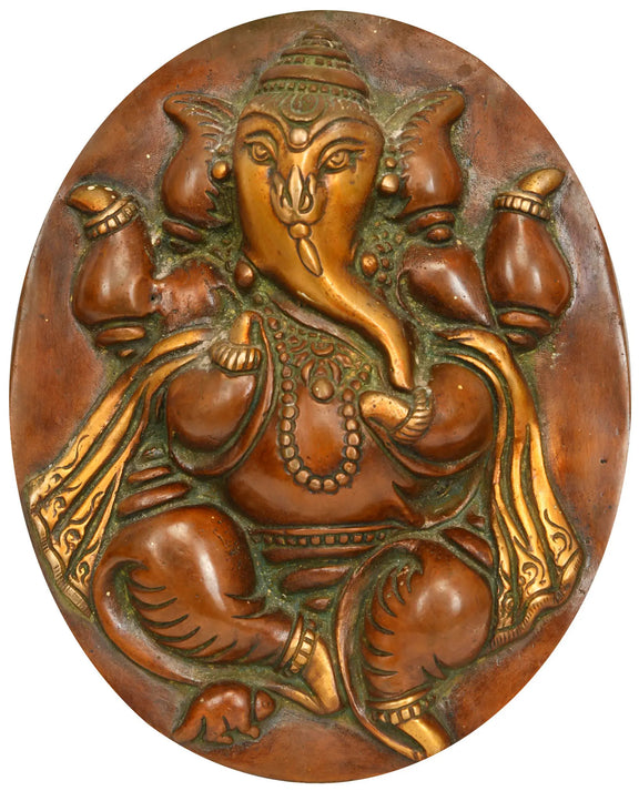 Brass Wall Hanging Plate of Lord Ganesha 8 inches