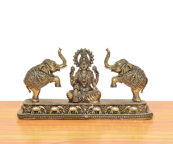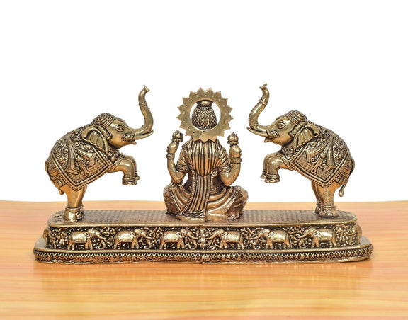 Bronze Gaj Lakshmi Goddess Sitting Statue (Height: 4 Inch)