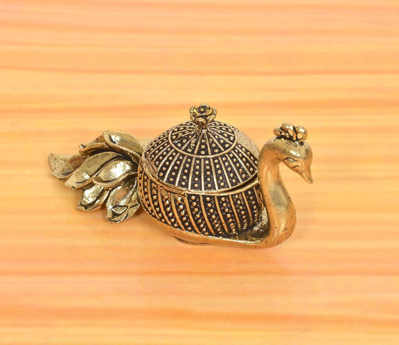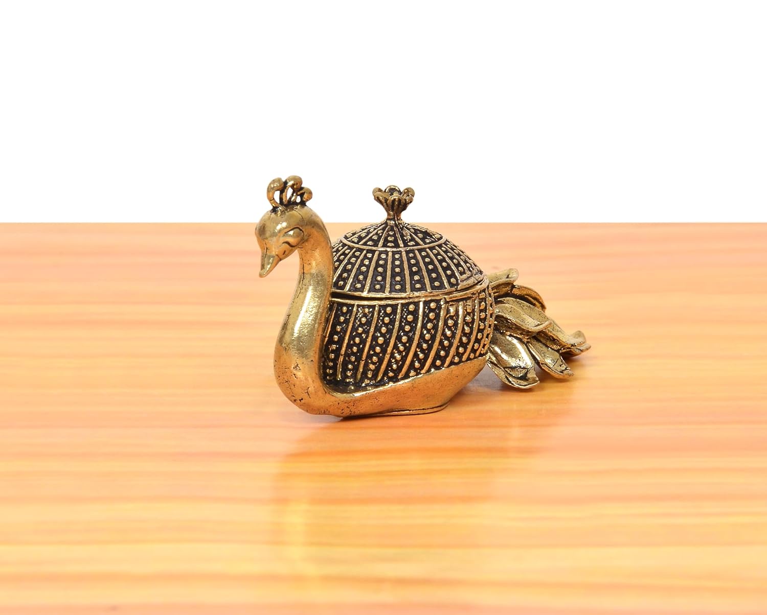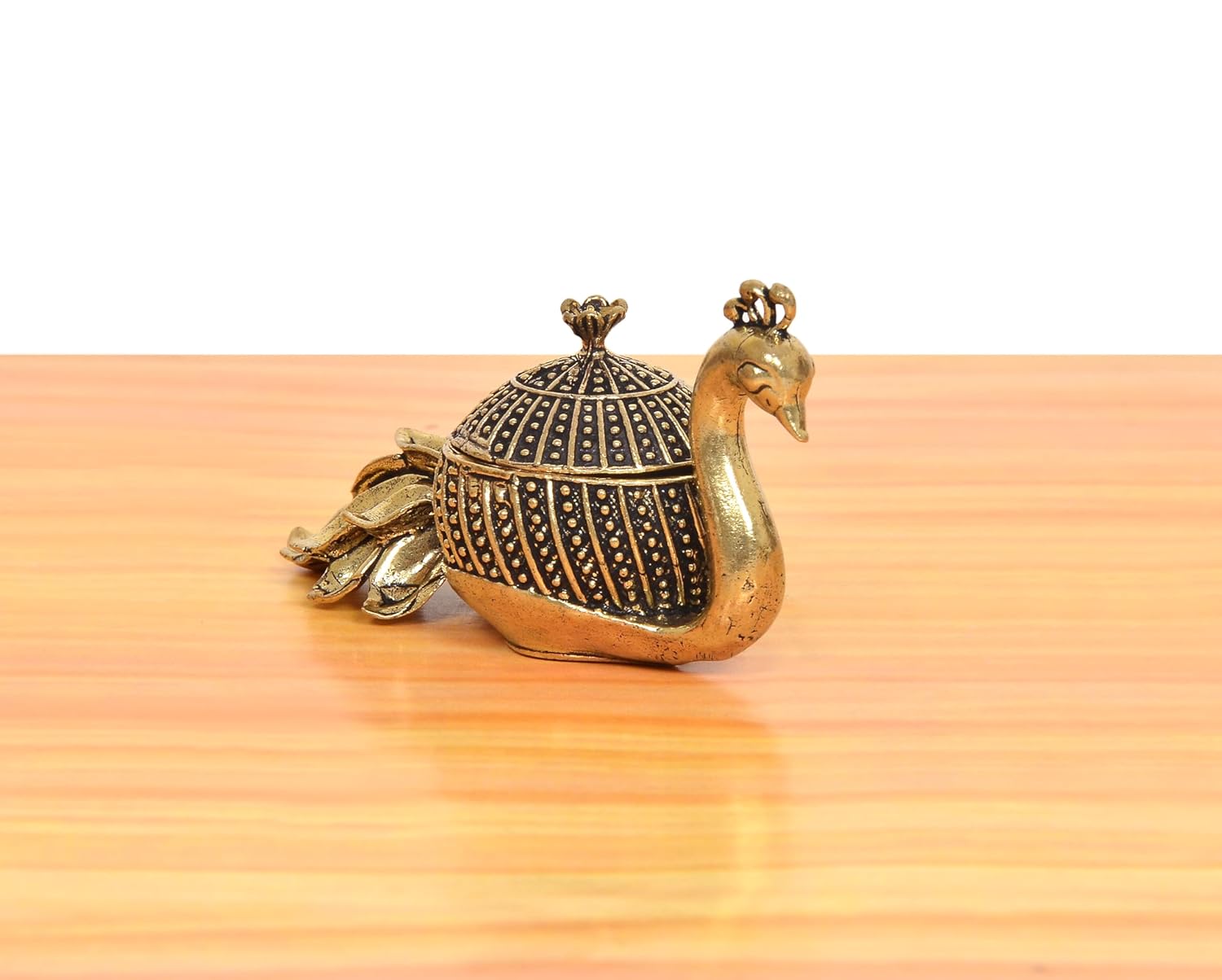 Bronze Kumkum Box Serving Duck & Swan Showpiece (Height: 2 Inch)