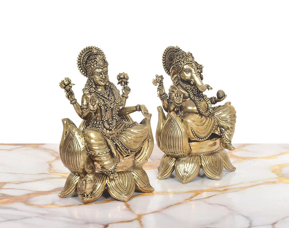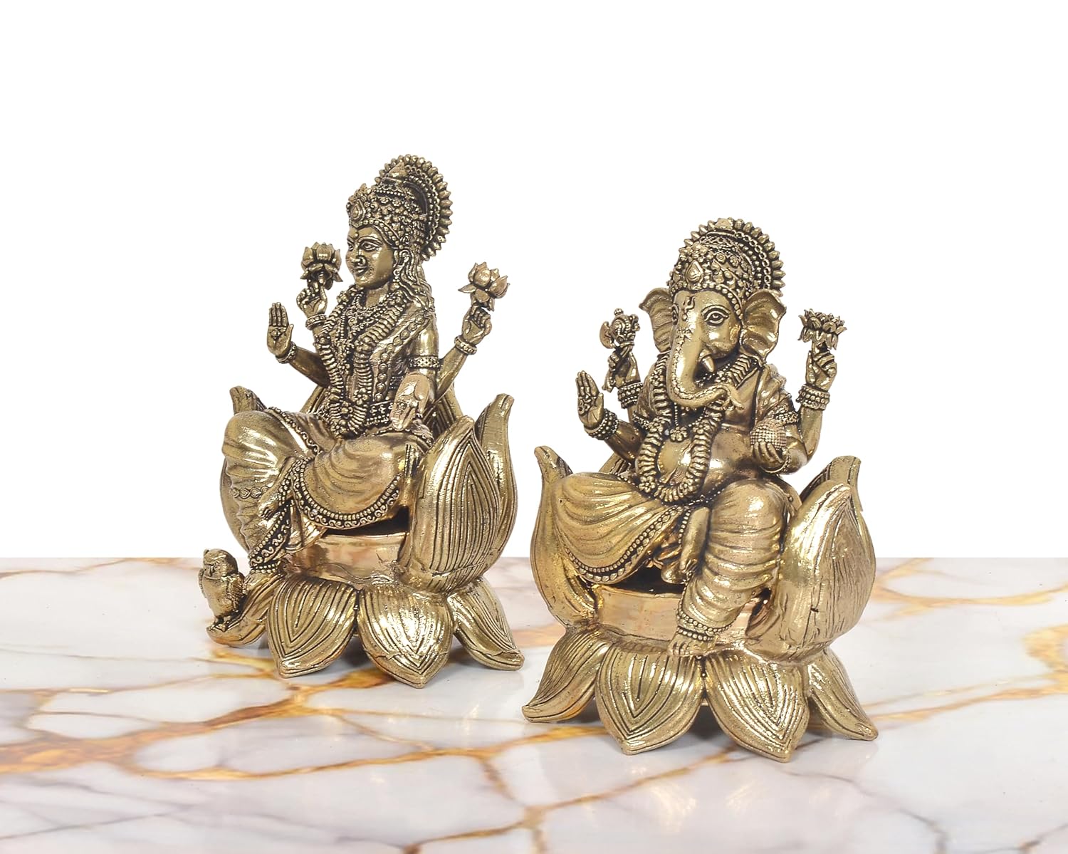 Bronze Lakshmi Ganesh Statue (Height: 5.5 Inch)