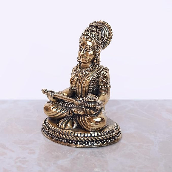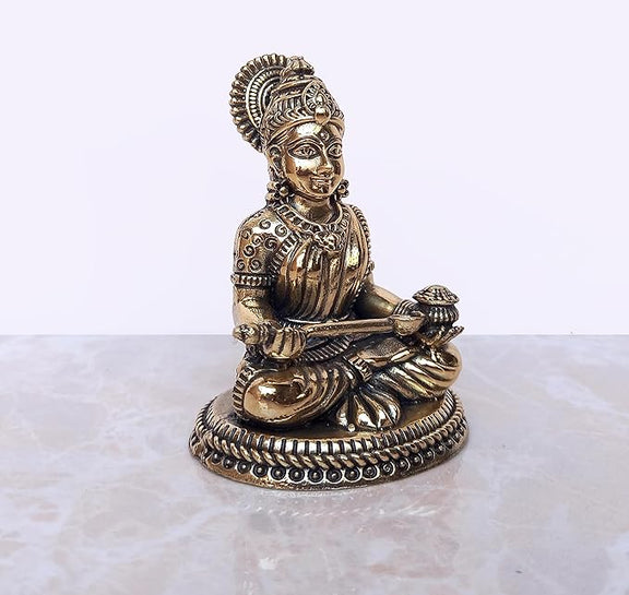 Indulge in the divine beauty and grace of our Bronze Maa Annapurna Murti. Standing at a height of 3 inches, this exquisite piece depicts the Goddess of food, radiating abundance and nourishment. Let her presence in your space bring blessings of prosperity and satisfaction. A must-have for any art or spiritual enthusiast.