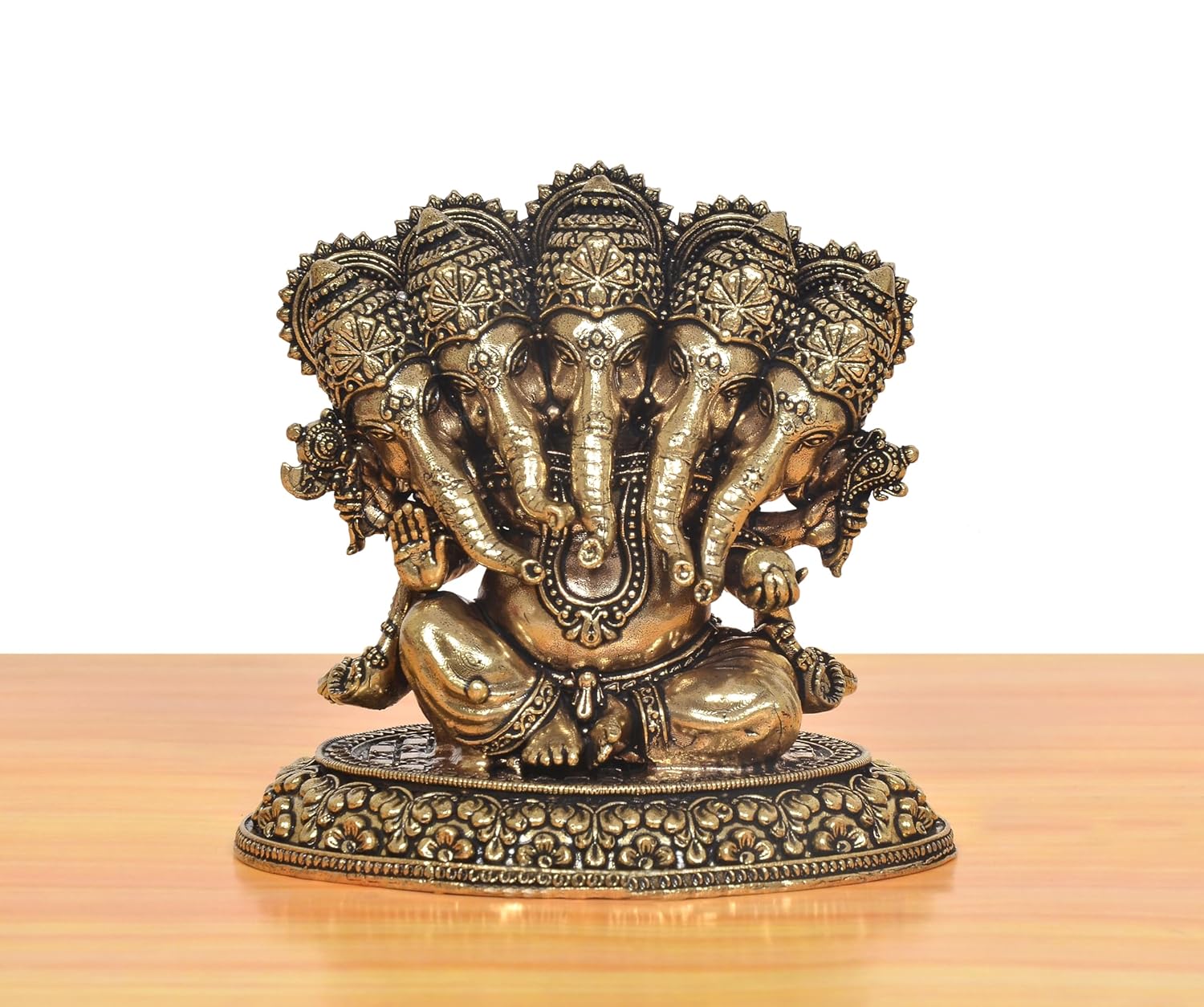 Bronze Panchmukhi Ganesha Five Head Murti (Height: 3.5 Inch)