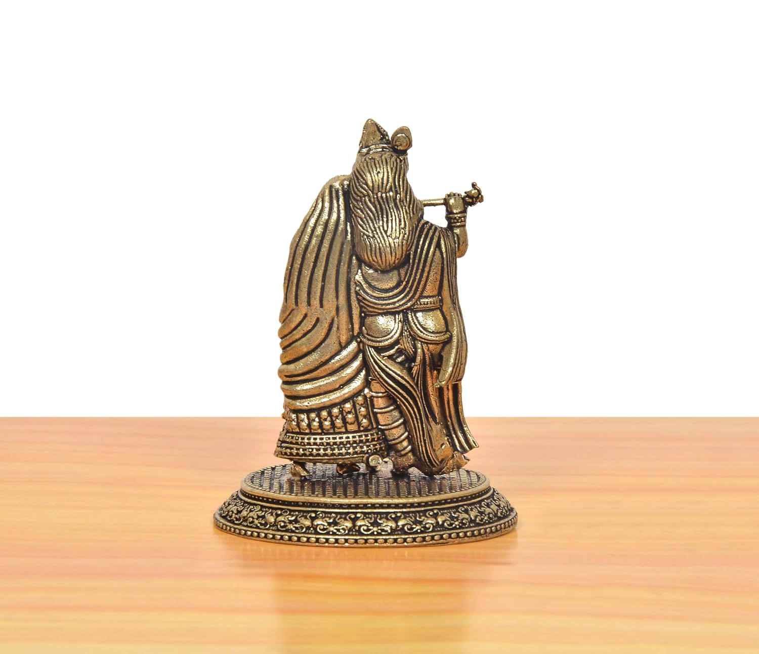 Bronze Radha Krishna Idol Playing his Flute (Height:3 Inch)