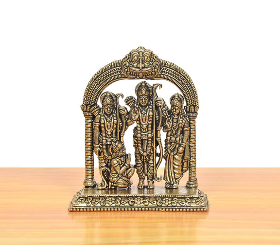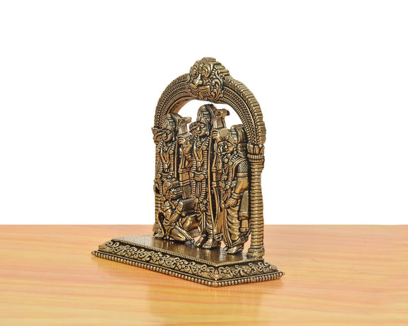 Bronze Ram Darbar with Sita Lakshman Hanuman on Carved Frame with Kirtimukha Finish Statue (Height: 4 Inch)