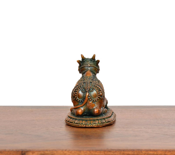 Bronze Shiva Seated Nandi Statue (Height: 2 Inch)