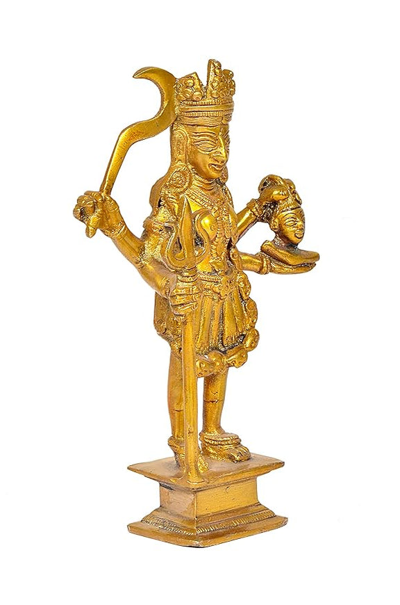 Goddess Kali Maa Golden Brass Statue (Height: 7.7 Inches)