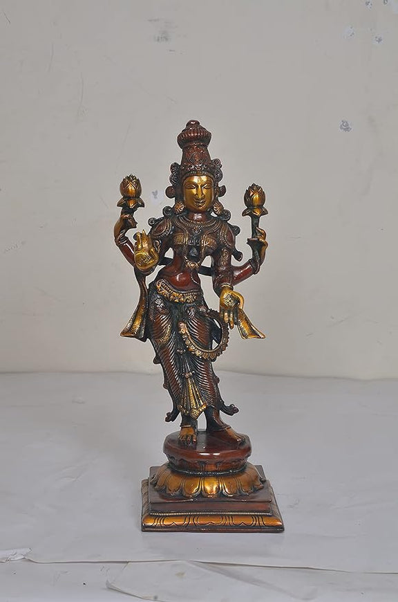 Lakshmi Idol in Standing Position Maha Lakshmi Brass Idol Laxmi MATA Brass Idol for Prosperity Golden Height 18 Inches