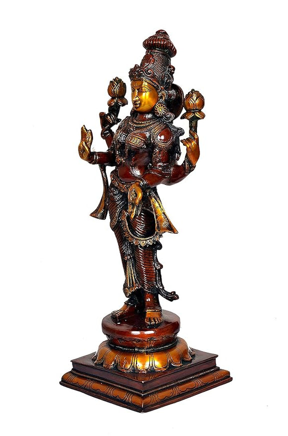 Elevate your home decor with our Lakshmi Idol in Standing Position. Crafted from high-quality brass and standing at 18 inches tall, this Maha Lakshmi idol exudes prosperity and elegance. Invite blessings and abundance into your life with this stunning and exclusive Laxmi Mata brass idol.
