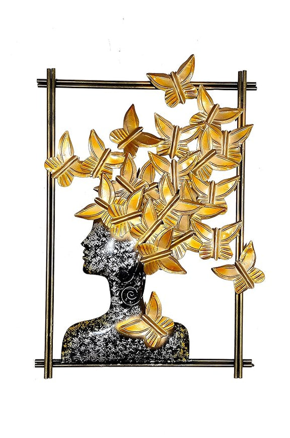 Iron Abstract Woman with Butterfly Hair Frame Wall Decor (Height: 29 Inches)
