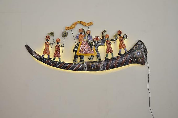 Elevate your home decor with our beautifully crafted Metal Elephant Darbar Decor. Each intricately designed and handcrafted wall piece adds a touch of luxury and sophistication to any room. This multicolour showpiece stands at 24 inches tall, making it the perfect statement piece for your home.