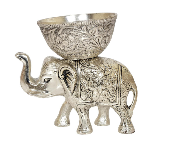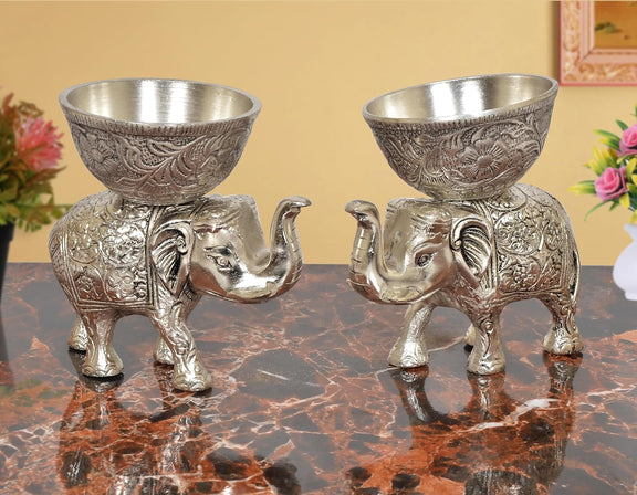 Metal Elephant Dry Fruit Bowl Showpiece Silver Polish Pack of 2 (Height: 5 Inch)