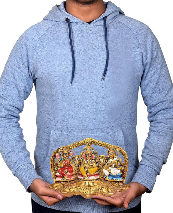 Illuminate your Diwali celebrations with this exquisite Laxmi Ganesh Saraswati idol diya oil lamp! Made of durable metal, this 5-inch statue is the perfect addition to your Diwali pooja and home decor. It also makes a thoughtful gift for loved ones. Bring prosperity and blessings into your home with this stunning showpiece
