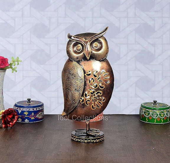 Elevate your decor with this stunning 14-inch Metal Owl Showpiece. Crafted with intricate details, this piece adds a touch of elegance to any room. Made with premium materials, it exudes luxury and sophistication. Perfect for art lovers and those with a discerning eye for style.