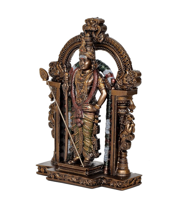 Resin Lord Swami Kartikeya Ji Kartik Statue with Peacock Murugan Subramanya Murti Height 8.5 Inch