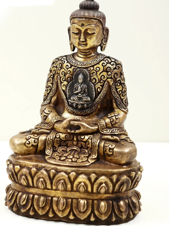 Small Brass Tibetan Buddhist Lord Buddha Idol in Dhyana Mudra 6 inches