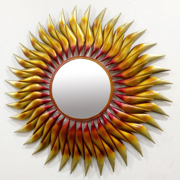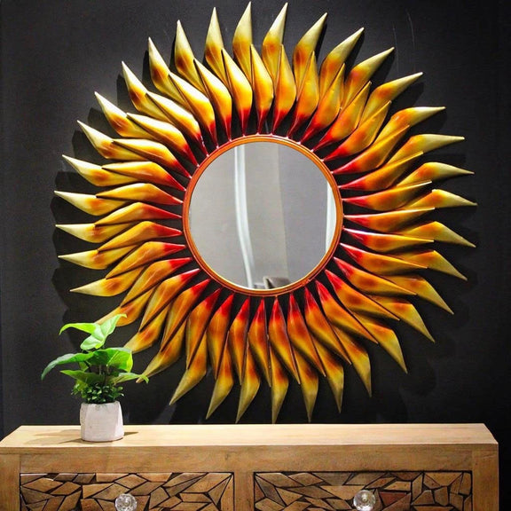 Iron The Powerful Sun Wall Hanging Mirror (Height: 38 Inches)