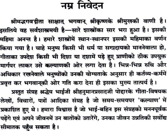 Dive into the profound wisdom of the Bhagavad Gita through the enlightening perspective of respected scholar Hanuman Prasad Poddar. "गीता चिंतन" offers powerful insights that transform ancient teachings into practical guidance for modern life. This thought-provoking collection of essays unlocks the Gita's timeless secrets, helping you navigate life's challenges with newfound clarity and purpose. A must-have for spiritual seekers and philosophy enthusiasts alike.