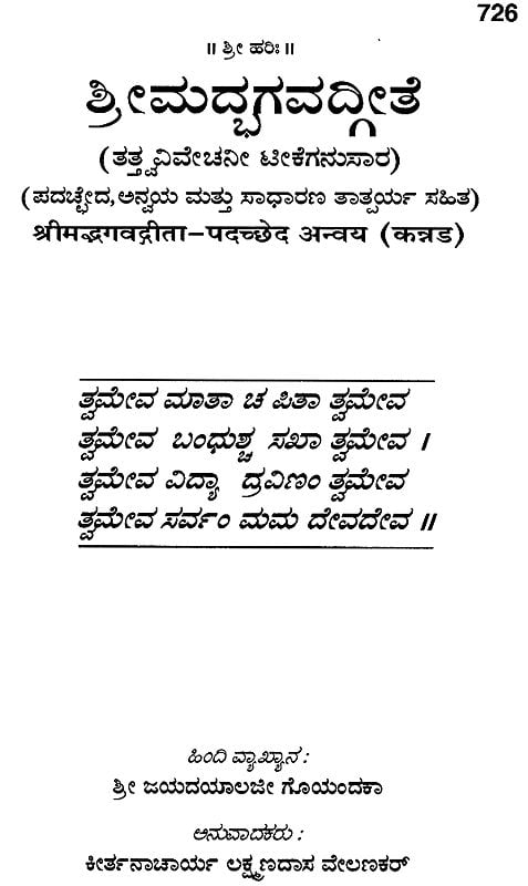 ಶ್ರೀಮದ್ಭಗವದ್ಗೀತಾ : Srimad Bhagavad Gita (Kannada)