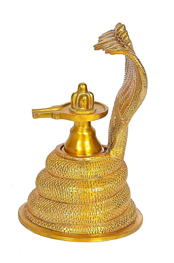 Brass Shiv Linga with Seven Headed Serpent (Height 8 Inches)