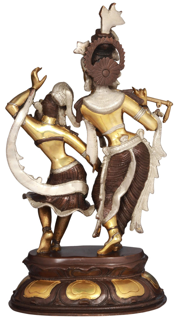 Affable gold silver gold Brass Statue of Radha and Krishna Engaged in Ecstatic Dance 16 INCHES