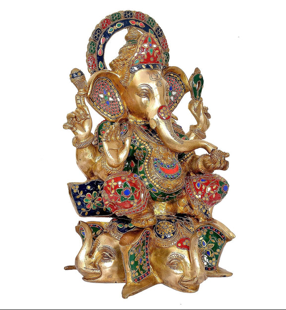 Brass Ganpati Murti On Lotus (Height : 17 inches)