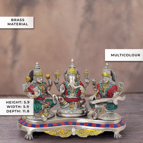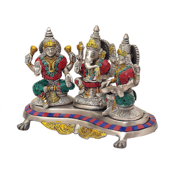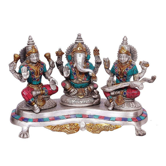 Brass Ganesh Lakshmi Saraswati silver colour (Height: 7 inches)