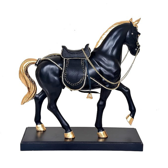 Polyresin Black Royal Horse Statue Showpiece (Height: 19 inches)