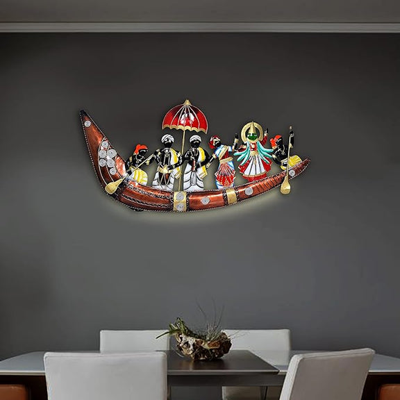 Iron Vallamkali Boat Wall Decorative Showpiece With LED Light (Height 15.5 Inches)