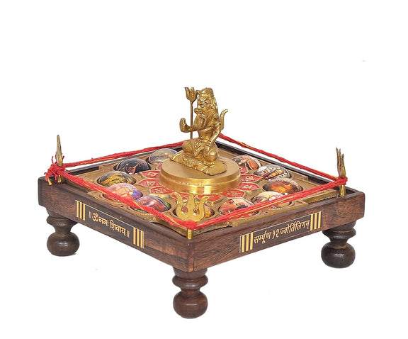 Brass 12 Jyotirling Chowki with Lord Shiva Feng Shui showpiece (Height 5 Inch)